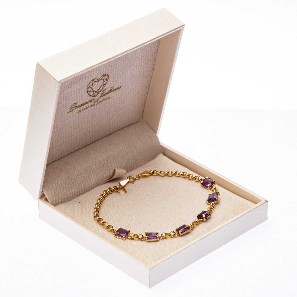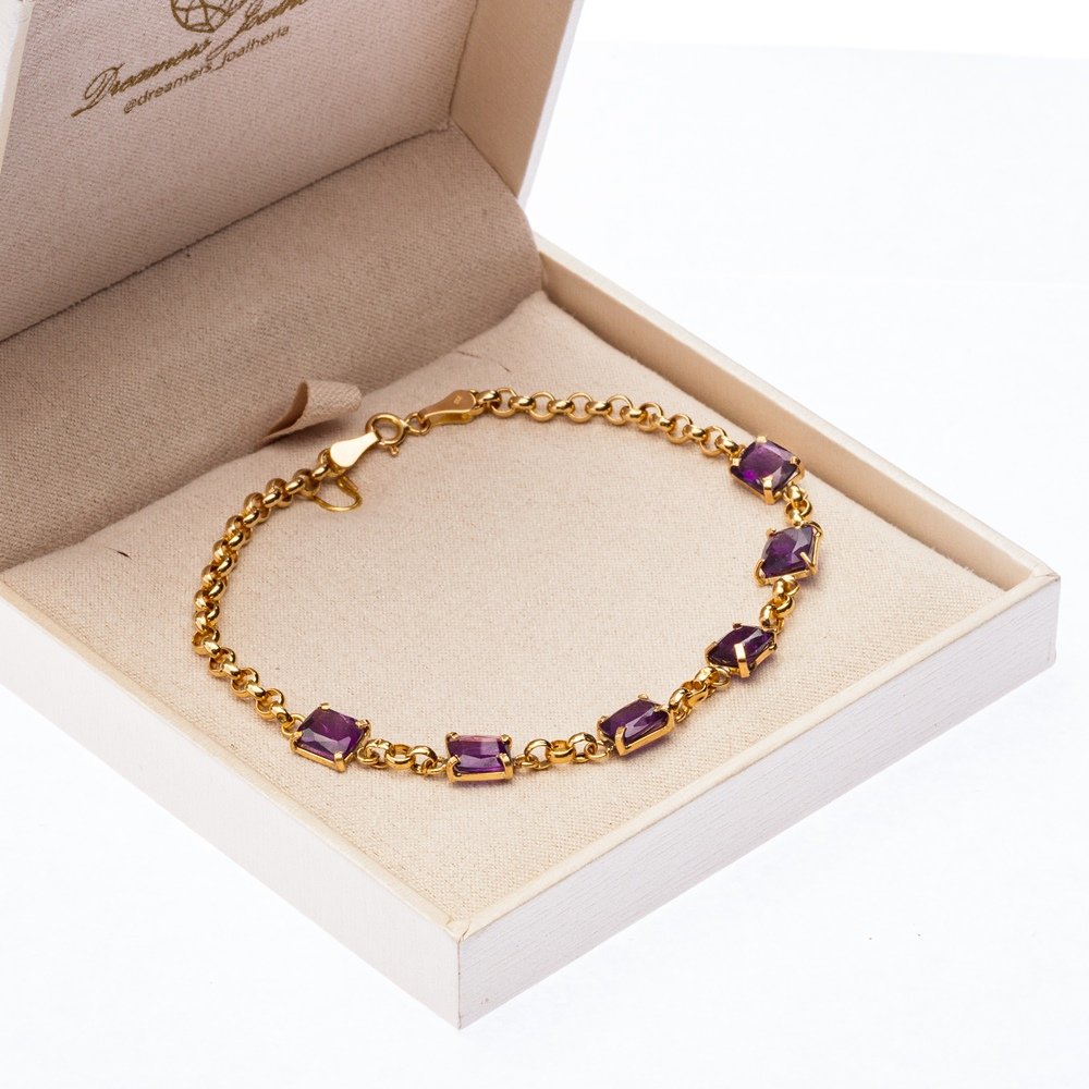 A pulseira de Ametista Natural Violeta da Dreamers é uma verdadeira obra-prima feita à mão em ouro, com seis deslumbrantes ametistas violeta . Seu design único e vibrante destaca a elegância e a sofisticação das pedras preciosas, trazendo uma energia mística e cativante para quem o usa.