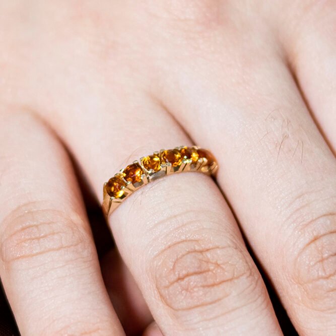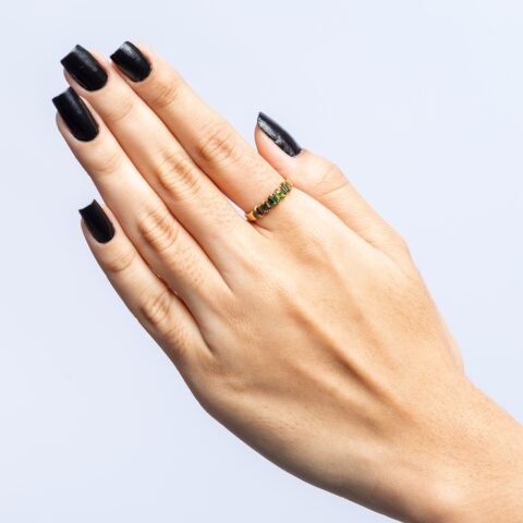 MEIA ALIANÇA DREAMERS EM OURO 18K COM 6 GEMAS DE ÁGUAS-MARINHAS